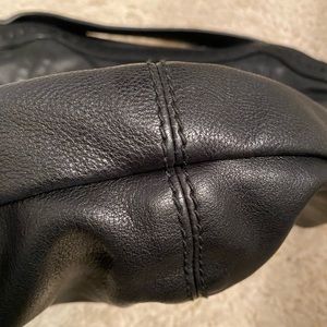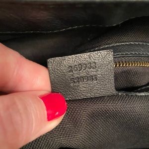 This is a beautiful authentic Gucci hobo bag in pristine condition..The bag is black; if you see any discrepancies in color, it is the lighting. 100% soft, buttery Italian leather. Features double GG detail on the brass hardware, intricate stitching at the top of the bag and braided strap (also comes with shoulder strap). The interior of the bag is spotless - no stains, tears or odor. There’s one interior zip pocket along with two smaller pockets. Have receipt/ auth card.