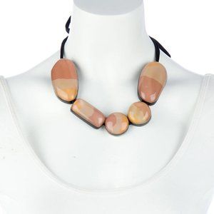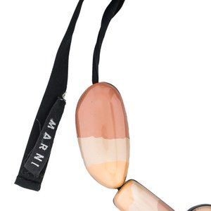 Black Marni satin ribbon necklace with multicolor resin beads and self tie closure. Includes dust bag and designer box. Measurements: Chain Length 55”, Ornament Width 2.5”, Ornament Length 1.25”. Condition Very Good. Brand tag loose, faint scratches at beads.