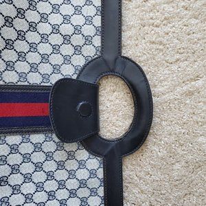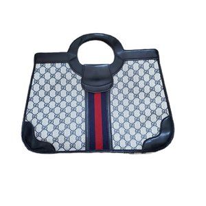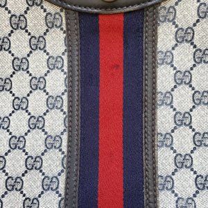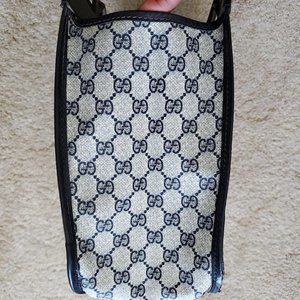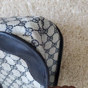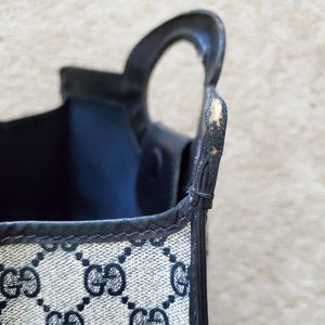 Authentic vintage Gucci handbag. No serial number from this vintage Gucci era. No dust cover bag. This bag is in poor condition but still has lots of life, it just needs your love. Blue GG monogram coated canvas and blue leather. WARNING: not for the picky posher.