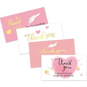 "Thank You for Supporting My Small Business!" Pink & White Gold Foil Font Styled in 4 Designs