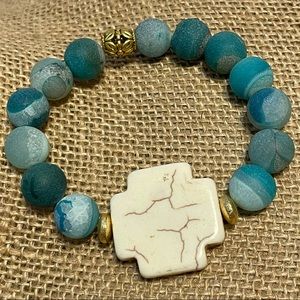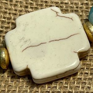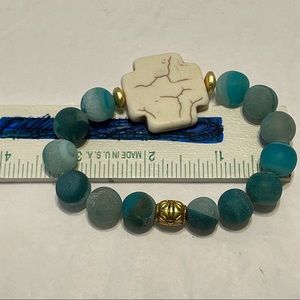 artisan stretch bracelet turquise howlite cross blue glass bead bracelet. Condition is "Pre-owned" smoke free home