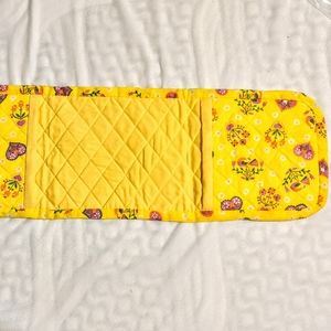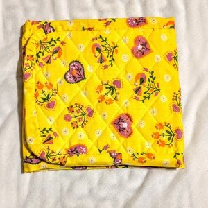 Yellow hearts and flowers double pot holder that you can fold or hang over the oven handle 26" x 8.5". 2 single pot holders with hanging loop 8" x 8" and 6" x 6". These items are handmade by my Mom and Aunt!