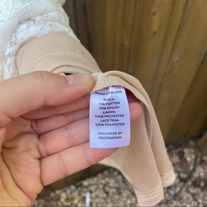 Shell. 70% Cotton. 30% Nylon. Lining: 100% Polyester. Lace Trim: 100% Polyester.