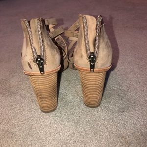 Gently used strappy heels. Overall the shoes are in great condition minus some weird stain on the side (bought them like that).