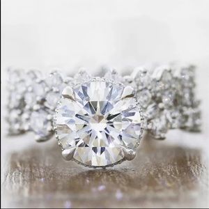 New 925 Silver 2pc Set Dainty Diamond Bridal Ring