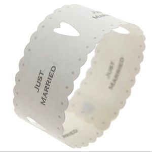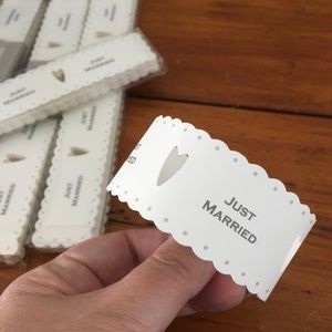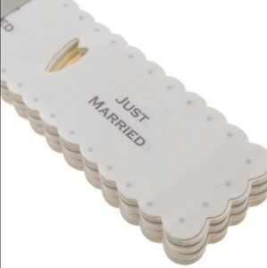 Six boxes of 50 pieces. Strips of paper with heart cut outs & lettering “Just Married”. Create your just married paper chains to decorate an area such as the cake table, photo op station, guest recordings station, themed candy table...... Hang from trees, ceiling or as a backdrop on a wall. Perfect extra touch on your special day. 5 new boxes never opened. 6th box has 48 pieces. In excellent new condition. NWT