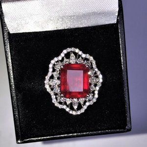 GORGEOUS and massive genuine ruby and diamond cocktail ring. Photos don't do it justice. Valued over $16k!!!