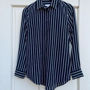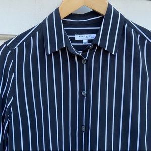 EQUIPMENT ESSENTIAL STRIPE SILK SHIRT BLOUSE // black and white button down blouse by Equipment in womens XS // somewhat oversized // Gorgeous and in great condition!