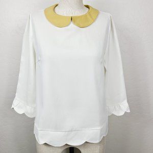 Comme Toi Anthropologie Blouse Ivory Mustard Yellow Peter Pan Collar Scalloped