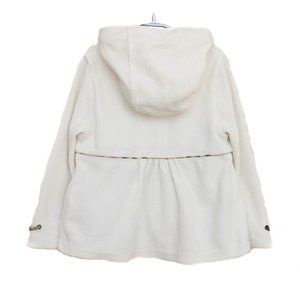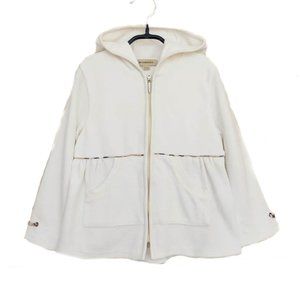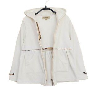 Off-White, velour hoodie/pants set accented by beige, "Nova Check" trim and silver, "Burberry" logo zipper pull