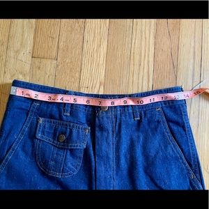 These pants are epic! Circa 1970s, they are made by Levis under the WildFire Line by Levis Panatela. They are a dark wash flare bell with pressed creases down the front and back of the jeans. Features one front pocket and two back pockets with snap closure pockets with the Wildfire logo. Also includes a patch on the back. Marked a size 29/32 but vintage fits small and these are technically mens. Measurements in line with a 27-28 - hips are narrow. Nice vintage condition.