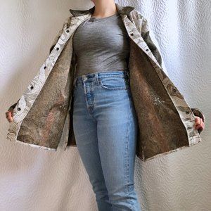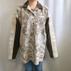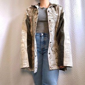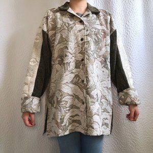 Floral, leaf, and nature-inspired vintage chore coat. A great light jacket or shacket for spring, summer, or fall adventure. Made in Canada.