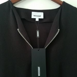 Brand New! Black, midi dress in a streamlined, minimal design with a zip front detail.