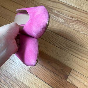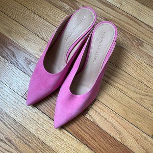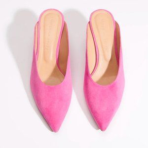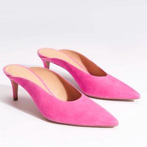 our Taran Mules deliver a pop of color and style. Bring a sense of playfulness to a refined power suit when wearing this bright pair. Available in French Rose.