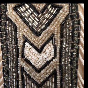 Stunning cream beaded, silk chiffon, high neck evening Gown with a polyester. Will bring tons of compliments while twirling on the dance floor. Also, makes an amazing wedding gown.