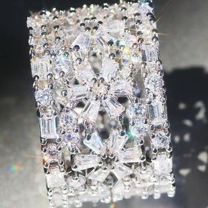 Simulated diamonds and white gold plated over sterling silver