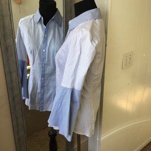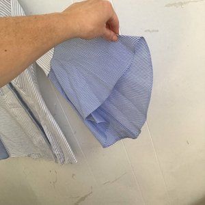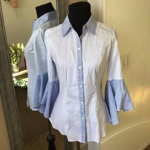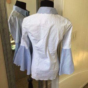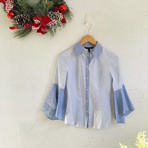 White House Black Market Blue and White Bell Sleeve Button Up Top! This top is absolutely adorable for work or for just dressing nice!