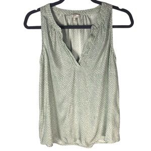 Women's Joie Fifi Silk Sleeveless Blouse with Light Green Leaf pattern in Size Small