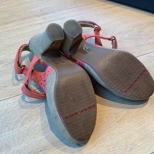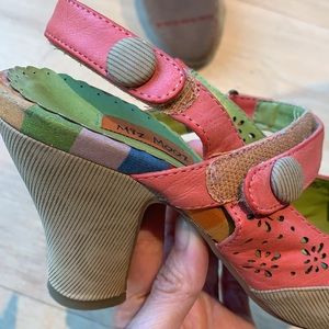Adorable Miz Mooz Mary Janes with coral pink edging decorated with die-cut flowers and velvet-corduroy round toe. Adjustable velcro straps. Shoes are worn and loved but I believe they could bring someone a couple more seasons of style and happiness! ๐ Low price reflects condition.