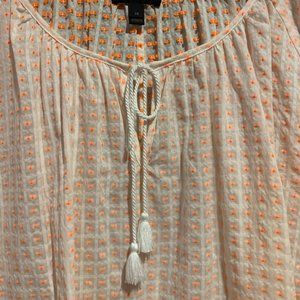 J CREW Boho Neon Dot Peasant Tassel Tie Top Shirt