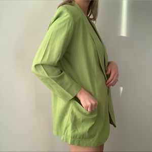 Vintage Lime Green Blazer Jacket Single Button Linen Rayon by Maren made in USA