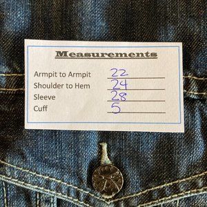 Artful Dodger jean jacket embroidered with "Death of a Craftsman" design