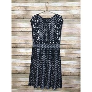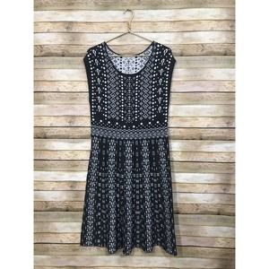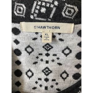 Sweet dark gray a-line knit jersey sweater dress with cap sleeve and all over gray geometric pattern from 41Hawthorn for Stitch Fix.