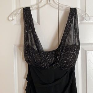 Beautiful halter dress with gold sparkles. Very flattering ruched bodice.