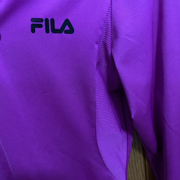 This shirt is great for working out or everyday wear. It has air vents in each armpit to keep you cool. It is a girls XL but could also fit a women’s small. Super pretty purple color. Spandex material.