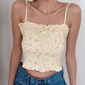 Yellow floral Ralph Ralph Lauren smocked cropped tank top