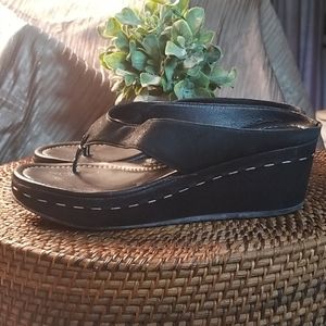 Black suede, thong wedges