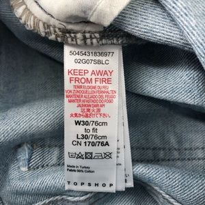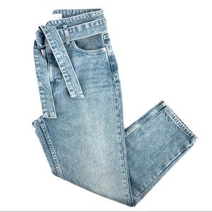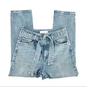Topshop Blue Tie Waist High Rise Light Wash Jeans