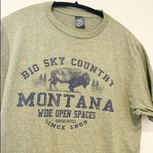 Super soft cotton-poly blend! Khaki-olive tone with Montana lettering. Boxy boyfriend fit for her or just a great, all-around tee for him. We’ll made, high quality.