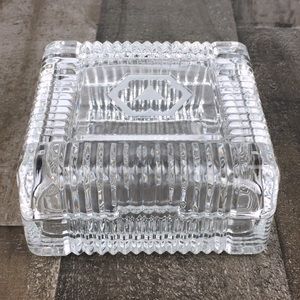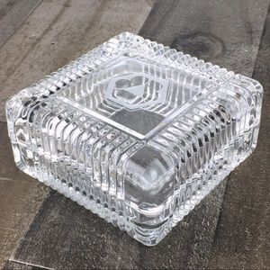 Vintage Glass Vanity Dish. Square Pressed Glass Trinket Box, Jewelry Box Keep Safe