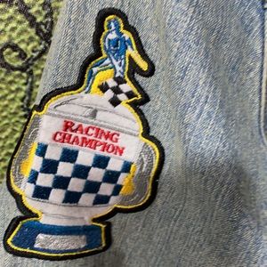 Jean jacket with car racing patches