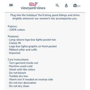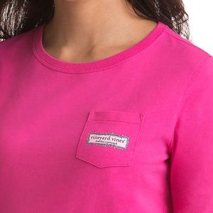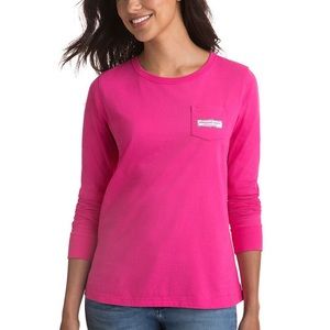 Vineyard Vines Hot Pink Christmas Lights Logo Long Sleeve Pocket Tee T-Shirt