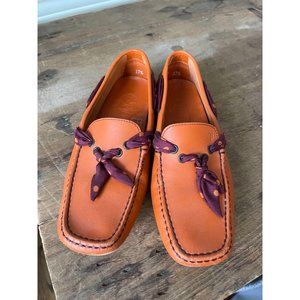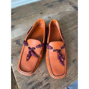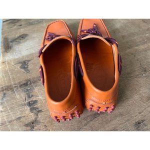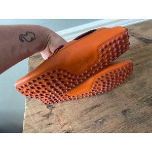 TOD'S Orange Leather Polka Dot Ribbon Driving Shoe Moccasins - Size 37.5