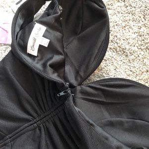 Brand new with tags Emerald Sundae full-length black bodycon dress with front slit, zip-up back, and padded cups. Size. XXS, but can also fit an XS. So beautiful and a high quality fabric! About 61” inches long from shoulder to hem