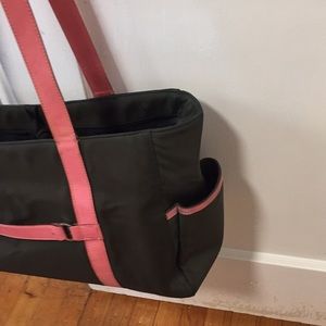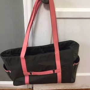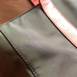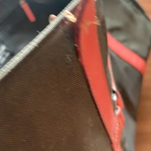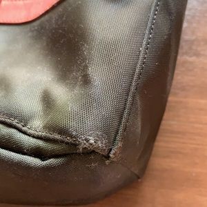 Bag is definitely in used condition. Please review ALL PicturesZ Straps are dirty and starting to pull away from the bag, but looks like it could be fixed. Bag is a little off in color in person. And is slightly discolored in areas. Bottom of bag also shows signed of wear