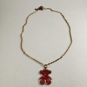 A Charming Gold Plated Necklace with a Red Teddy Bear Pendant and Matching Earrings. That Necklace is about 20 inches long and 2 inches extension chain. The pendant is about 1.25" x0.75". Shelf pull item, New without tag.