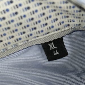 Light weight shirt button front button down collar. Small pin stripe in light blue. One button is damaged because of dry cleaning. Came back from the cleaners with 1 damaged button see pic. Price reflects damage