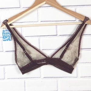 NWT Free People Alia Bralette. Outside material is 91% polymide, 9% elastane. Lining is 83% polymide 17% elastane. Unpadded cups. Pull-on styling. Adjustable shoulder straps. Mesh & lace fabric. Color is Bordeaux wine.