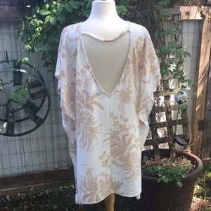 NWOT Kona Sol swimsuit cover up. Beautiful light weight cover up in white, tan and silver streaks through out giving you that little bit of dressy. Cute fringe tassels! Perfect for Summer!! 🌴
