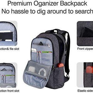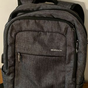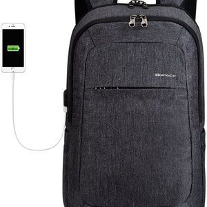 Kopack brand dark gray heather lightweight travel backpack with water resistant durable fabric, padded computer sleeve, USB phone charging port, and anti-theft zippers that you can lock with a separate lock