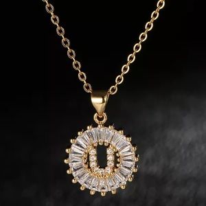 Beautiful gold tone baguette Crystal initial necklace