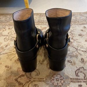 As seen on Kate Moss and Gigi Hadid in the SW campaign, these 9.5M are super cool & comfortable. 2” block heel, black leather with gold hardware. These are in good condition with what you could expect with some wear. All wear is photographed. 1. Some wrinkling of leather where the foot bends. 2. A 2” tear inside the shoe that does not affect the appearance of the shoe. 3. A scuff on the left front of the boot that’s hard to see