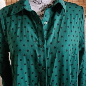 Gorgeous green Asos polka dot midi pleated shirt dress. Beautiful fabric although this dress is from the Asos maternity line it is also lovely to wear at any time.