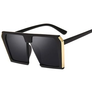 🕶LUXURY BLACK WITH GOLD TRIM FLAT TOP SQUARE SHAPED FRAME OVERSIZED SUNNIES OR SUNGLASSES. BLACK PLASTIC FRAMES AND LENSES. NOT MIRROR