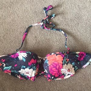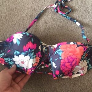 Great condition. Can wear many ways or remove straps on this bathing suit top all together. Lightly padded and not removable ones. 34A shade & shore brand. Beautiful gray background with aqua, orange, pink, white flowers. Pair with a solid bottom in any of those colors! Very boho and beachy.