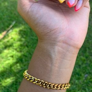 Stainless Steel 18k Gold Plated Cuban Link Chain Bracelet. SIZE:6mm (One Size Adjustable)